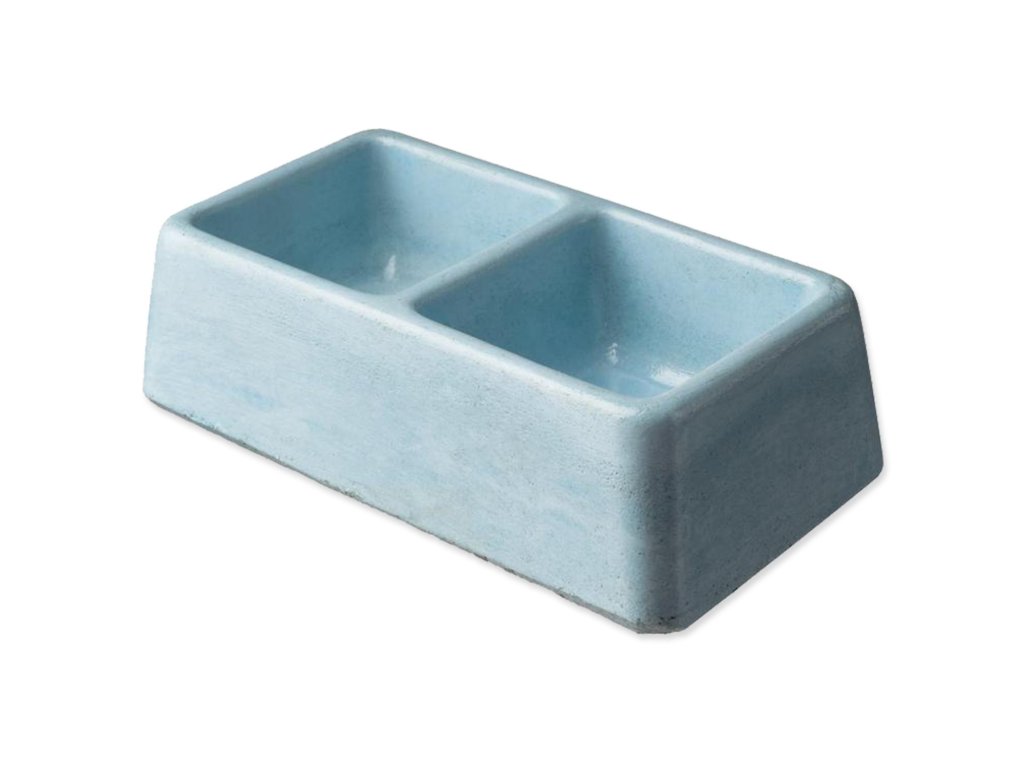Masivní betonová dvojmiska z masivního betonu pro snažší udržení na jednom místě i při vysoké aktivitě zvířátka.