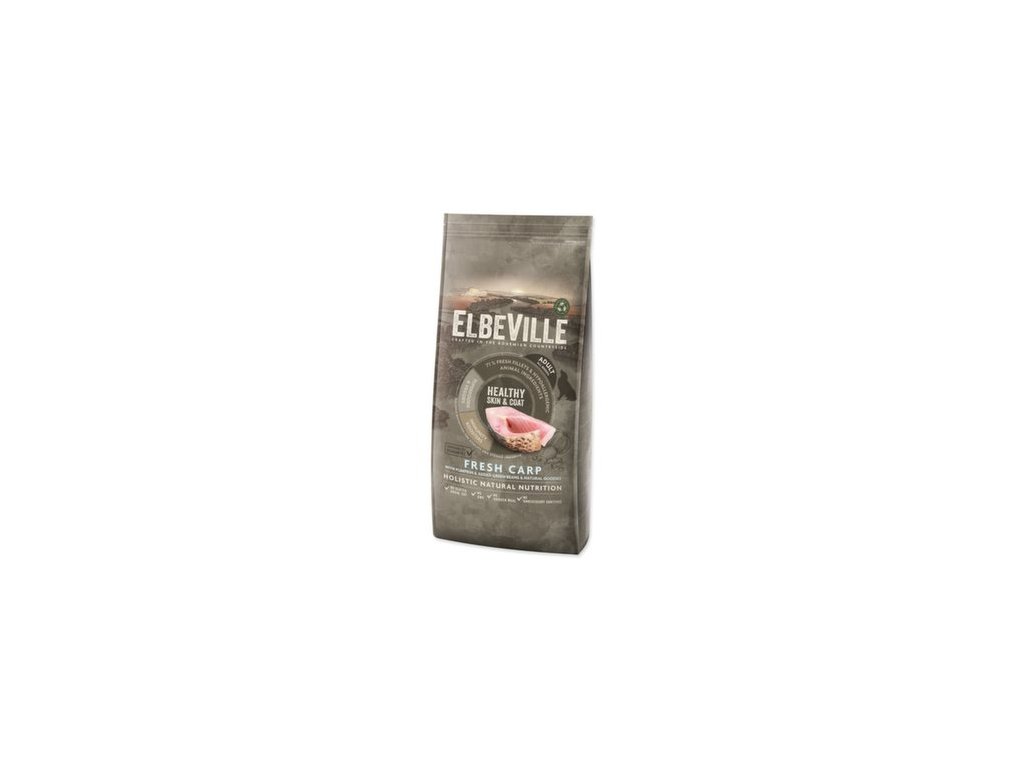 ELBEVILLE je přirozená strava pro celkové zdraví Vašeho psa. Je vyrobená z nejlepších přírodních, lokálních surovin včetně tzv. superpotravin a s vysokým obsahem kvalitního čerstvého masa. Tato receptura obsahuje 35 % čerstvých vykostěných filetů z kapra a dále 28 %