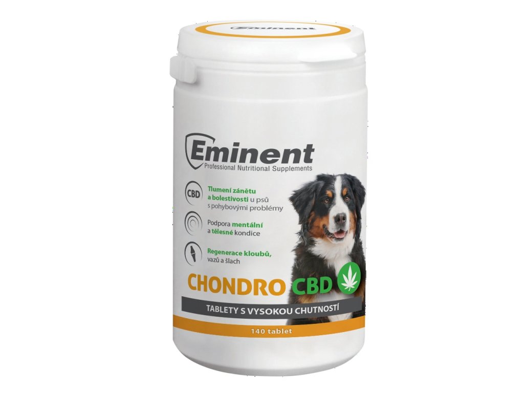 Eminent Chondro CBD je speciálně vytvořený doplněk stravy ve formě tablet, obsahující látky které se podílejí na udržení zdraví kloubní chrupavky, zabezpečují obnovu buněk a tlumí zánětlivé procesy, které onemocnění provázejí. Výsledkem je zlepšení pohybu a nálady Vašeho psa. Díky obsahu sedmi aktivních látek včetně kanabidiolu (CBD) nejen regeneruje a chrání kloubní chrupavku, ale také pomáhá tlumit bolest, zánět a stres, čímž přispívá ke zlepšení celkové pohody psa.