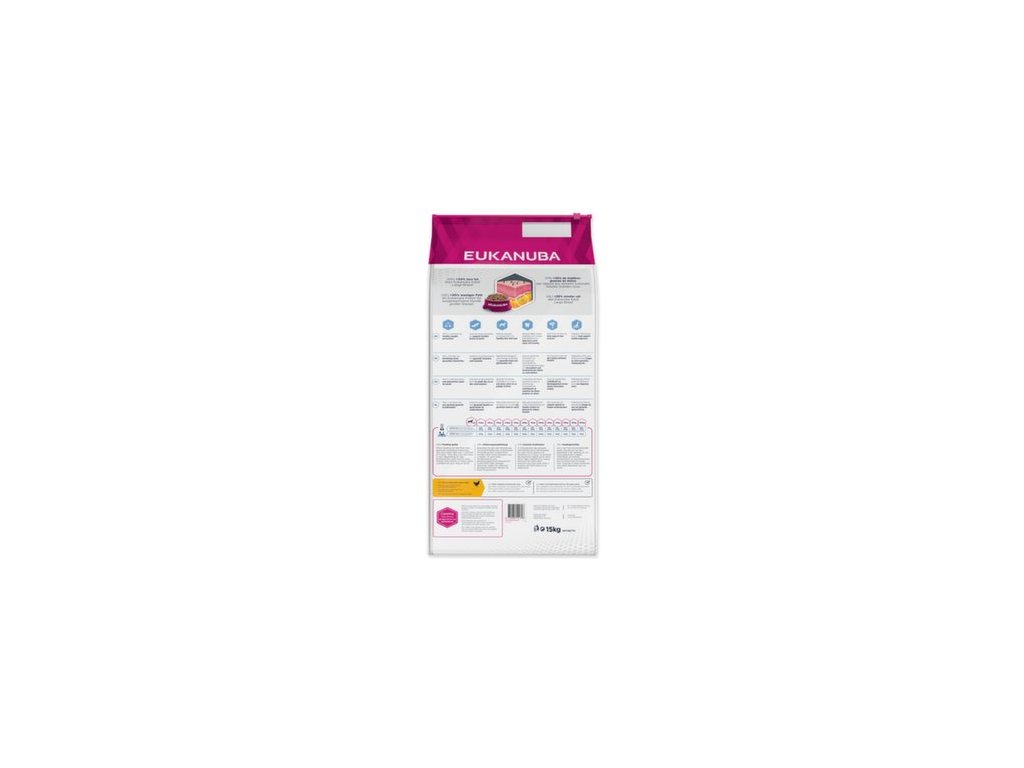 Krmivo značky Eukanuba poskytuje optimální denní dávku proteinů, karbohydrátů, důležitých vitamínů a minerálů pro zdraví a pohodu vašeho psa. Tato strava má snížený obsah tuku, čímž napomáhá k udržení optimální váhy a minimalizaci zatížení kloubů. Některé tuky byly nahrazeny karbohydráty s nižším obsahem kalorií, aniž by došlo ke ztrátě výživové hodnoty. Výživa obsahuje složku FlexMobility (systém péče o klouby), jejíž výživová složka podporuje zdravé kloubní chrupavky. Obsahuje přísady vysoké kvality a velké množství živočišných proteinů.