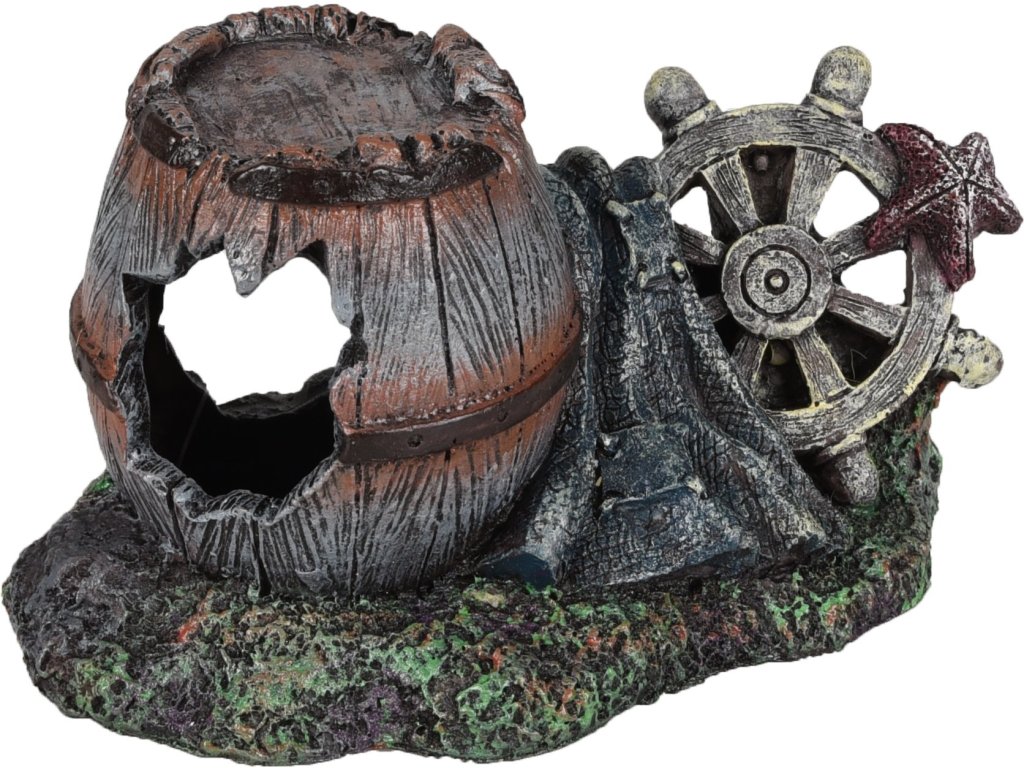 Flamingo akvarijní dekorace BARRIE BARREL UPRIGHTUmělohmotná imitace kormidla a sudu navozuje tajemnou atmosféru mořského dna a poskytuje rybám příjemný úkryt. Zajímavé a estetické provedení.