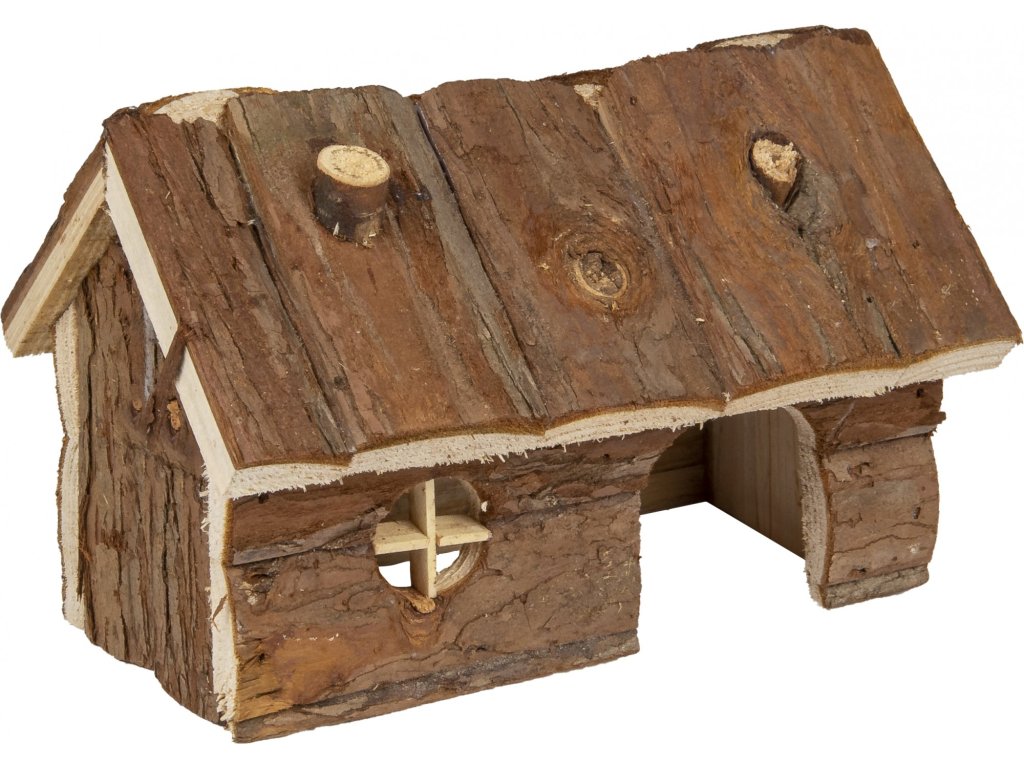 Flamingo domeček HOUSE GRITTY WOOD MHezký dřevěný domeček je vyrobený pouze z přírodních materiálů. Ideální na hraní i jako úkryt. Může dobře posloužit i k broušení zubů.