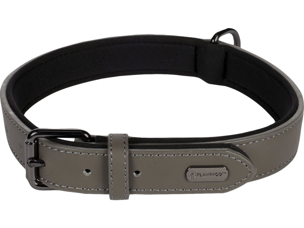 Flamingo Binti Kožený obojek s neoprenem Šedá L