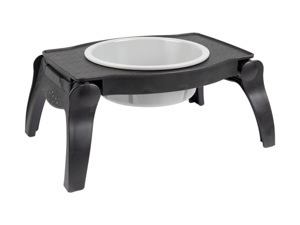 Praktický set misky a skládacího držáku, který využijete při společných cestách se svým chlupatým přítelem. Plastový držák má sklopné nožky s protiskluznou úpravou a díky lehkému, ale pevnému materiálu je ideální na dlouhé túry nebo několikadenní cestování. Průměr misky 13,5cm. Objem 800ml. Rozměry stojánku 27,5x19,5x12cm