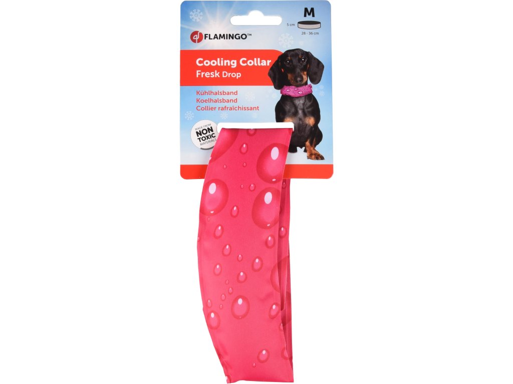 Flamingo Chladící obojek pro psy vzor kapky fuchsia M 28-36cm