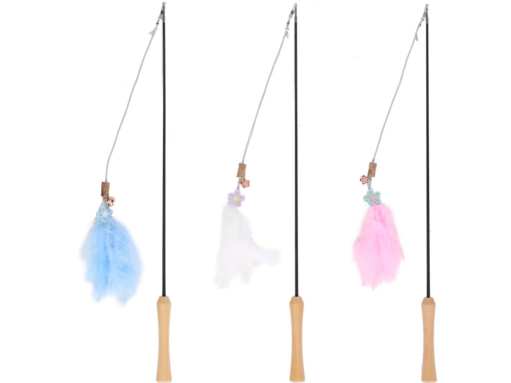Rozmazlujte svou kočku tímto interaktivním, teleskopickým "rybářským prutem". Rukojeť je vyrobena ze dřeva matatabi, které je pro kočky atraktivní podobně jako catnip (šanta kočičí). Obsahuje rolničky a peří pro hodiny zábavy. Stimuluje lovecký instinkt a poskytuje kočce relaxaci. Hračka je vyměnitelná.