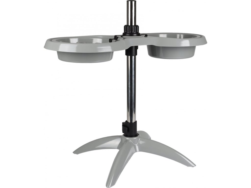 S praktickým stojanem se dvěma miskami SUVI budete mít jídlo a vodu pro svého psa vždy na jednom místě. Díky gumovým nožkám je stojan protiskluzový. Misky jsou nastavitelné až do výšky 54 cm a uchytí se pomocí rychlé svorky. Misky lze mýt v myčce. Objem misek: 1100 ml a 1500 ml