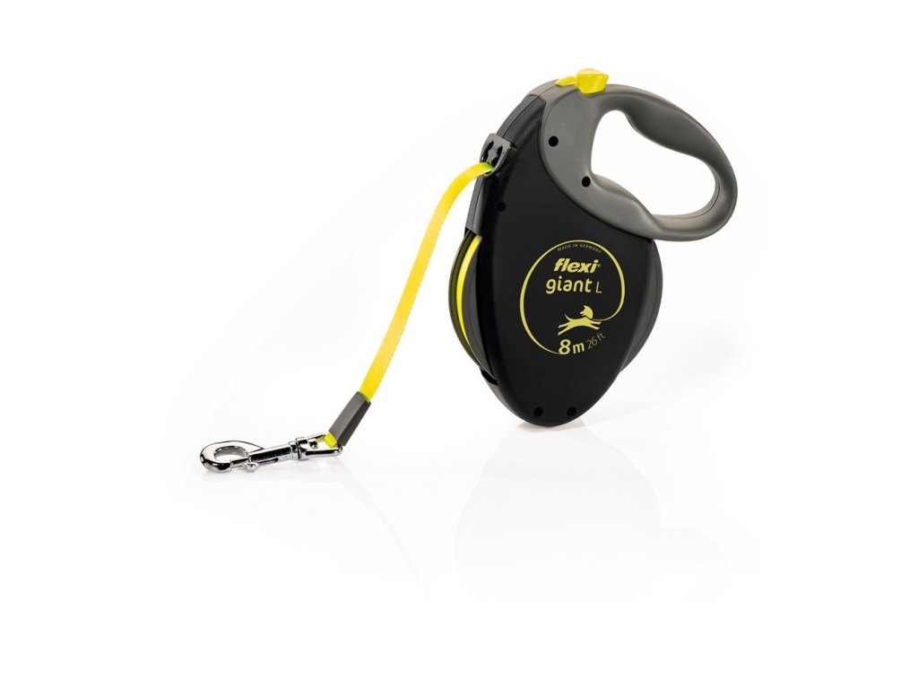 Vodítko vhodné do městského provozu - samonavíjecí vodítko flexi Giant Neon je plně vybaveno reflexními prvky, díky kterým za šera a tmy budete dobře viditelní.
