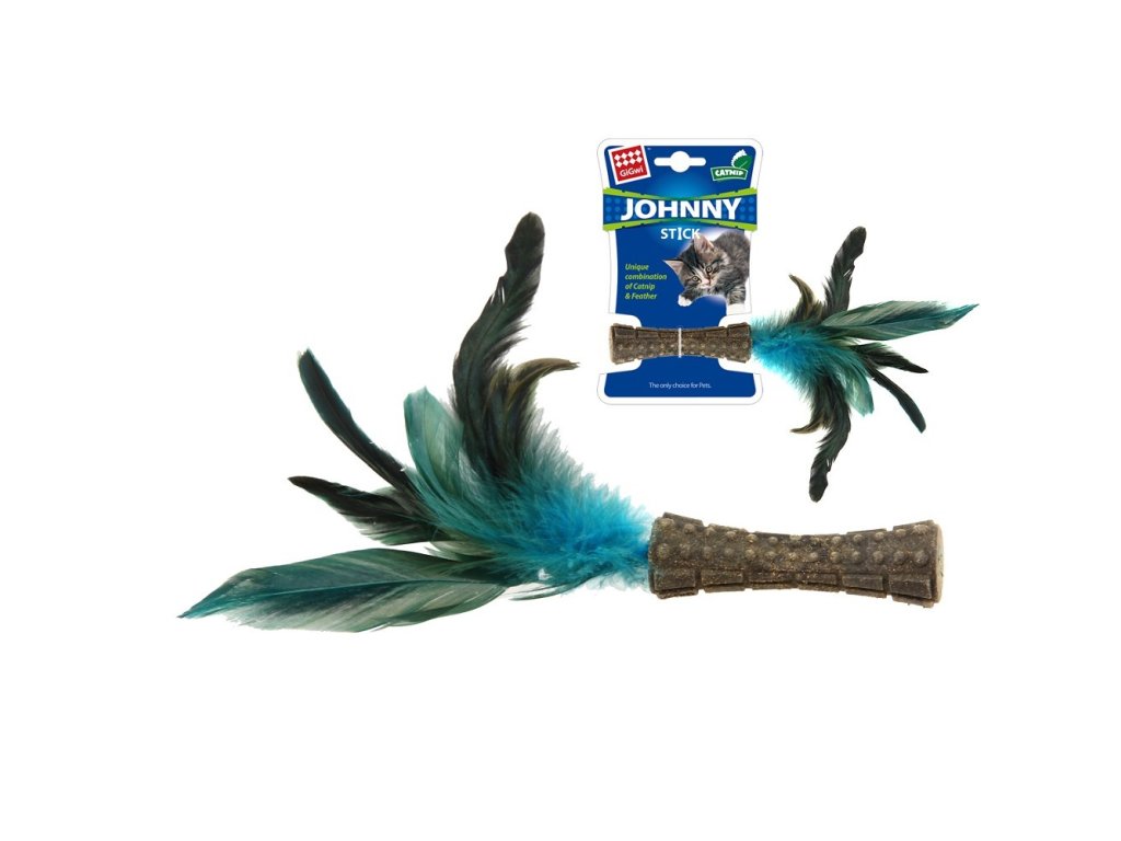 GiGwi Johnny Stick Catnip s modrými peříčky