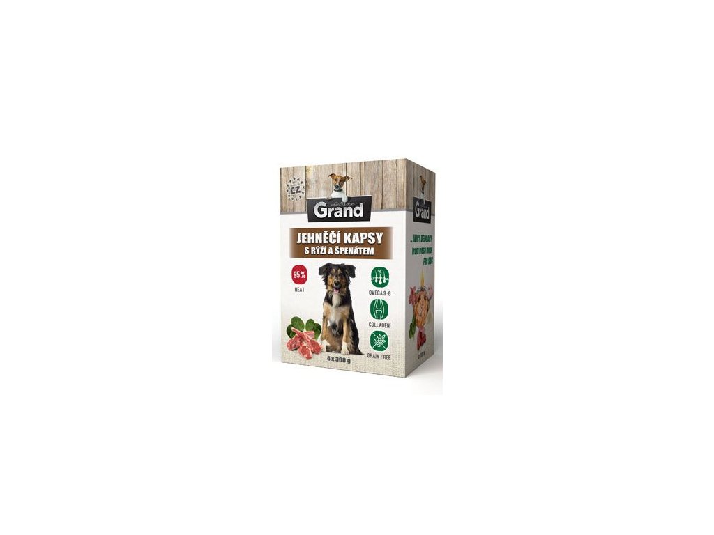 GRAND Deluxe Jehněčí s rýží a špenátem je kompletní vlhké krmivo pro všechny dospělé psy. Je připraveno z čerstvého masa a šetrný proces vařený v páře zajištuje zachování jeho chutnosti, strukturu a výživové hodnoty. Lněný olej obsahuje Omega 3 a 6 nenasycené mastné kyseliny, které blahodárně působí na zdravou kůži a lesklou srst. Špenát dodává organismu potřebné vitamíny a minerály, je bohatý na antioxidanty, které mají protizánětlivé účinky. Krmivo je bez obsahu chemických a konzervačních přísad, barviv a dochucovadel.