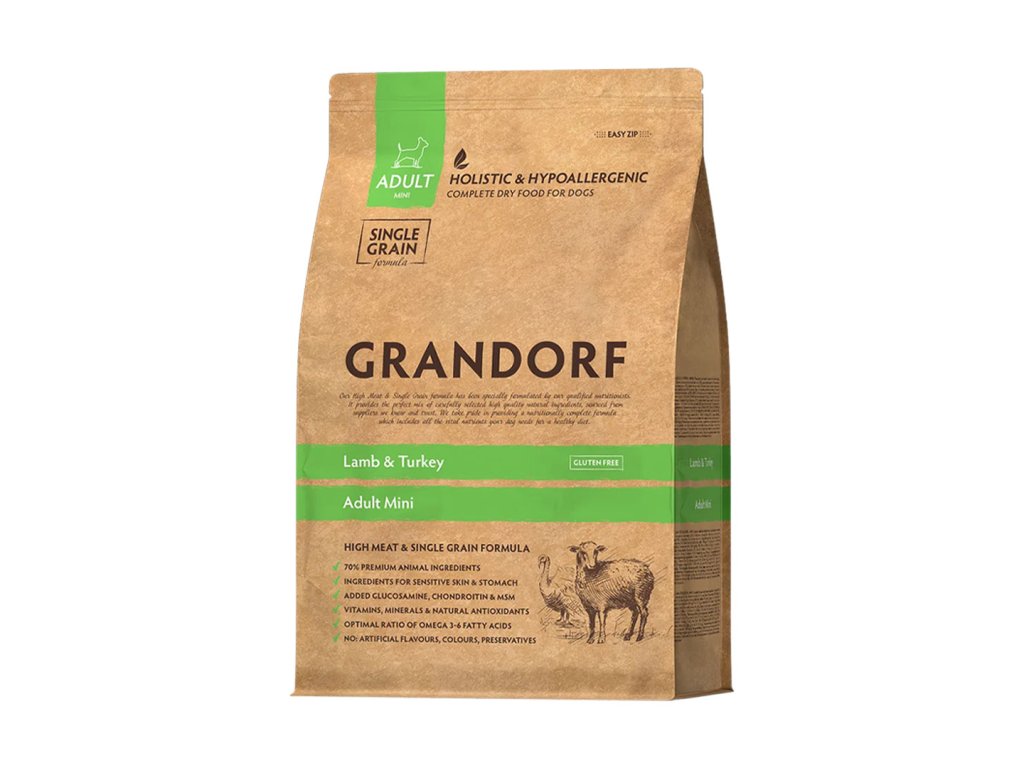 Díky vyvážené receptuře, hypoalergenním složkám, jednozrnnému a bezlepkovému složení má krmivo Grandorf Adult Mini Jehně a krocan vynikající stravitelnost, vysokou nutriční hodnotu a pomáhá vašemu mazlíčkovi zůstat zdravý a veselý po mnoho let.