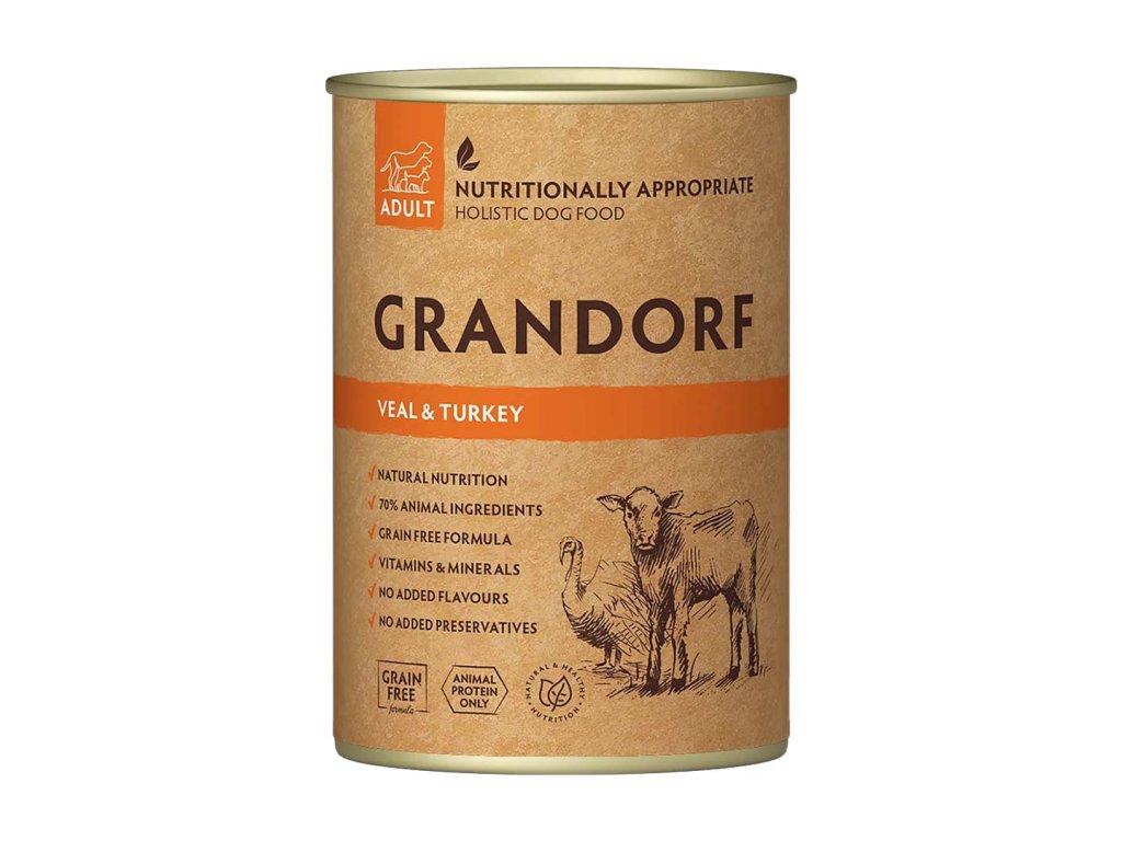 Grandorf konzerva pro psy Adult Telecí a krocan 400g