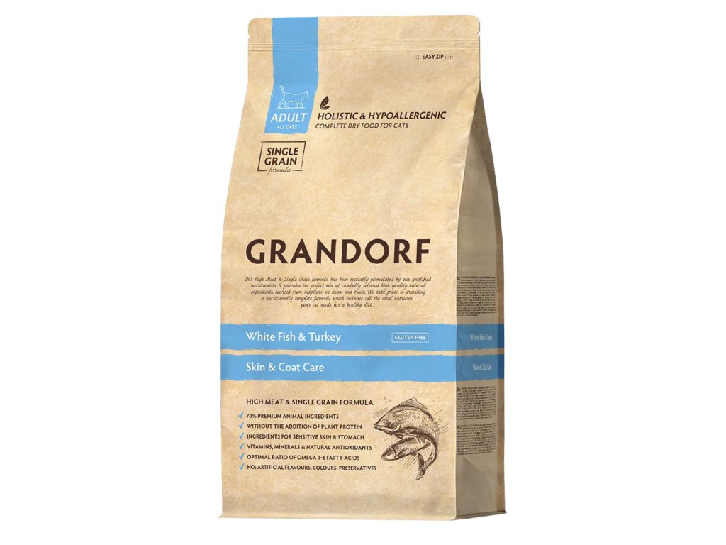 Granule pro dospělé kočky Grandorf Adult Skin Care Bílá ryba a krocan, 2 kg