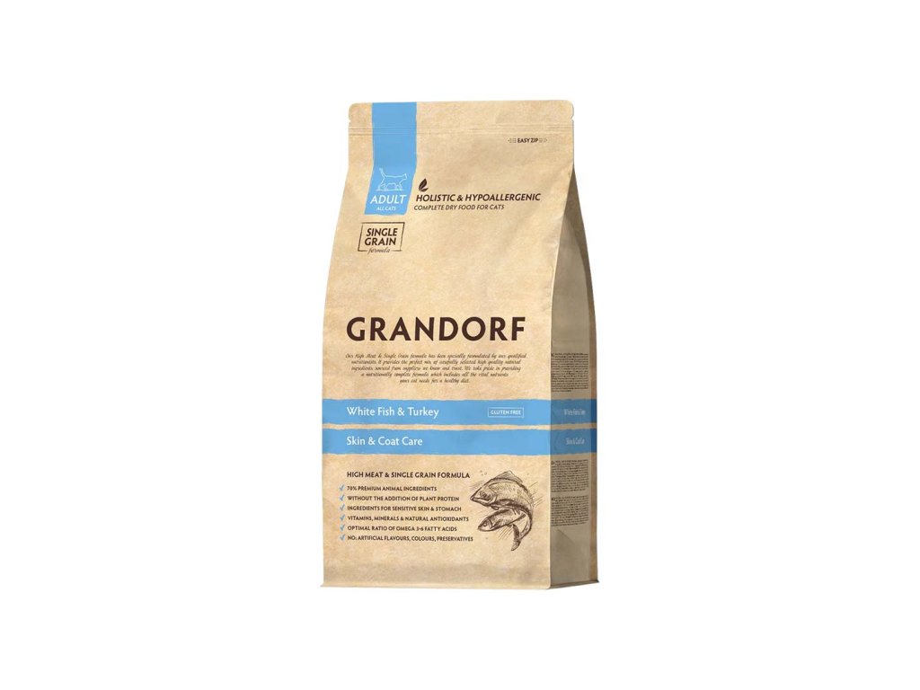 Granule pro dospělé kočky Grandorf Adult Skin Care Bílá ryba a krocan, 400 g