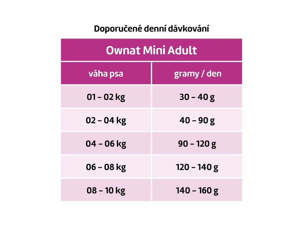 Malí psi mají specifické potřeby, a proto je důležité jim poskytnout krmivo, které odpovídá jejich velikosti, ale zároveň splňuje všechny výživové požadavky. OWNAT CLASSIC DOG Mini Adult je kvalitní krmivo speciálně navržené pro dospělé psy menších plemen. Tyto kvalitní granule jsou přizpůsobené velikostí i složením tak, aby podporovaly zdraví a vitalitu vašeho malého mazlíčka.