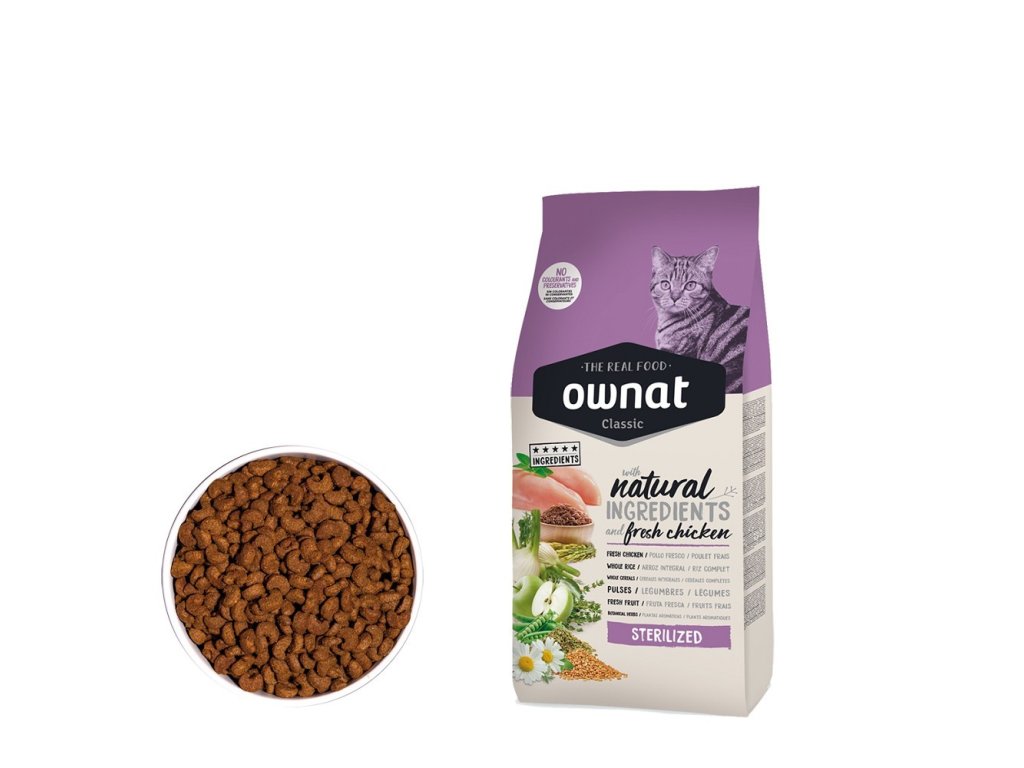 OWNAT CLASSIC CAT Sterilized je krmivo určené pro sterilizované kočky, které mají nižší energetické nároky a větší sklon k přibírání na váze. Toto krmivo obsahuje nižší podíl tuku a je bohaté na kvalitní bílkoviny z kuřecího masa, které pomáhají udržovat zdravou svalovou hmotu. Přidané brusinky podporují zdraví močového ústrojí, což je častá potřeba sterilizovaných koček.