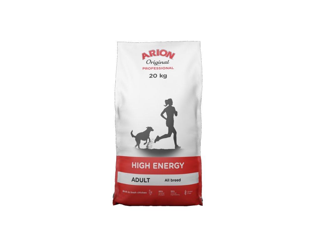 ARION PRO HIGH ENERGY 20 KGArion Original High Energy je kompletní krmivo pro psy všech plemen, kteří mají vyšší potřebu energie. Bezlepková receptura na bázi kuřecího obsahuje vyšší hladinu energie, L- karnitin a chondroprotektiva pro aktivní, pracující a kojící psy nebo psy v rekonvalescenci.