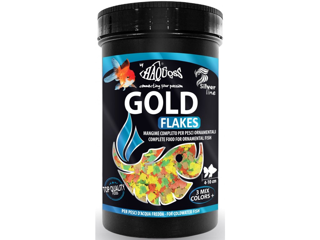 Haquoss Gold kompletní krmivo pro studenovodní ryby 1000 mlPlovoucí barevné vločkové krmivo pro okrasné jezírkové ryby. Obsahuje vločky velikosti 4-10 cm. Krmivo je vyráběno speciálním způsobem pro zachování kvality použitých surovin. Dodává rybám mastné kyseliny, beta-glukan, beta karoten, ASTAXANTHINA, aminokyseliny, vitaminy a cenné stopové prvky. Plovoucí krmivo ve třech různých barvách láká ryby ke krmení a jistě nezůstane bez povšimnutí.