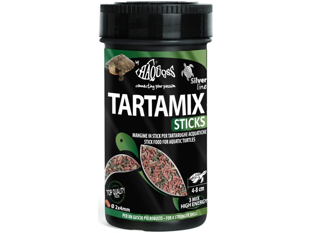 Haquoss kompletní krmivo pro želvyS prémiovým krmivem Haquoss dodáváte svým želvám všechny důležité živiny. Tyčinkové krmivo je vhodné pro vodní i suchozemské želvy. Jedná se o směs, která obsahuje všechny důležité živiny a přísun základních vitaminů, které zajišťují optimální poměr vápníku a fosforu pro zdravý krunýř a stabilní kosti. Granule jsou chutné a lehce stravitelné, což zajišťuje lepší kvalitu vody.