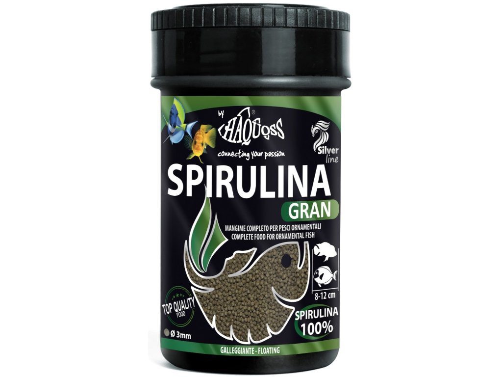 Haquoss SPIRULINA GRAN 100 mlSuper prémiové doplňkové granulované krmivo, nutričně vyvážené, formulované tak, aby splňovalo požadavky všech druhů sladkovodních a mořských ryb. Obsahuje pouze ušlechtilé složky a vyniká vysokou stravitelností. Podporuje vývoj i růst, zlepšuje činnost imunitního systému a zbarvení všech druhů ryb.