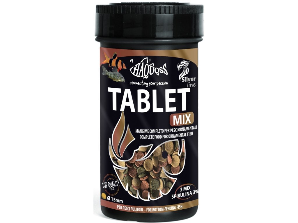Haquoss Tablet Mix pro ryby žijící na dně 250 mlKompletní tabletové krmivo pro okrasné ryby žijící na dně. Vhodné je i pro želvy, krevety, kraby a vodní šneky.