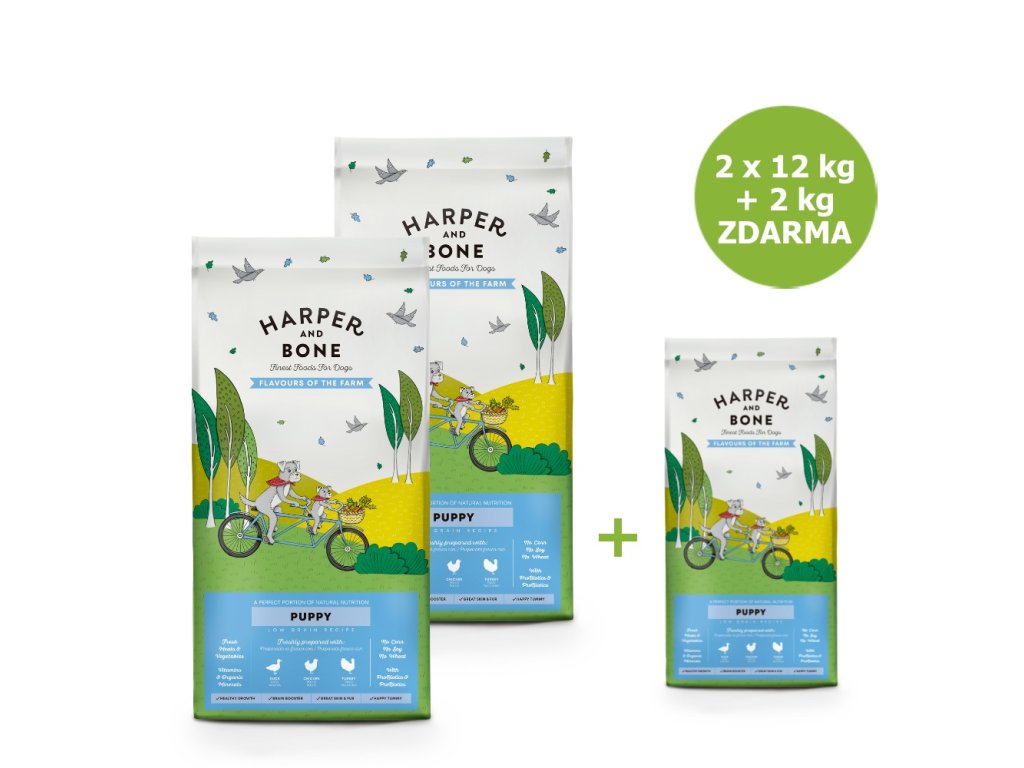 Harper and Bone Dog Puppy příchutě farmy AKCE 2 x 12 kg + 2 kg ZDARMA