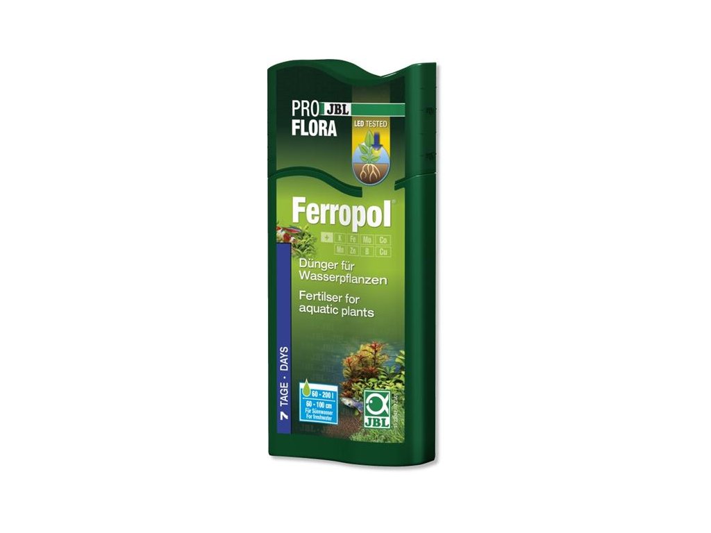 Univerzální tekuté hnojivo pro všechny druhy zelených akvarijních rostlin dávkované do vody v akváriu a rostlinami přijímané prostřednictvím listů, ale i kořenů (poté co hnojivo absorbuje substrát). Dodává akvarijním rostlinám potřebné minerály a v neposlední řadě pro chlorofyl nepostradatelné železo. Železo, které je obsaženo v přípravku JBL Ferropol je navíc v chelátové formě, což brání jeho volné oxidaci.