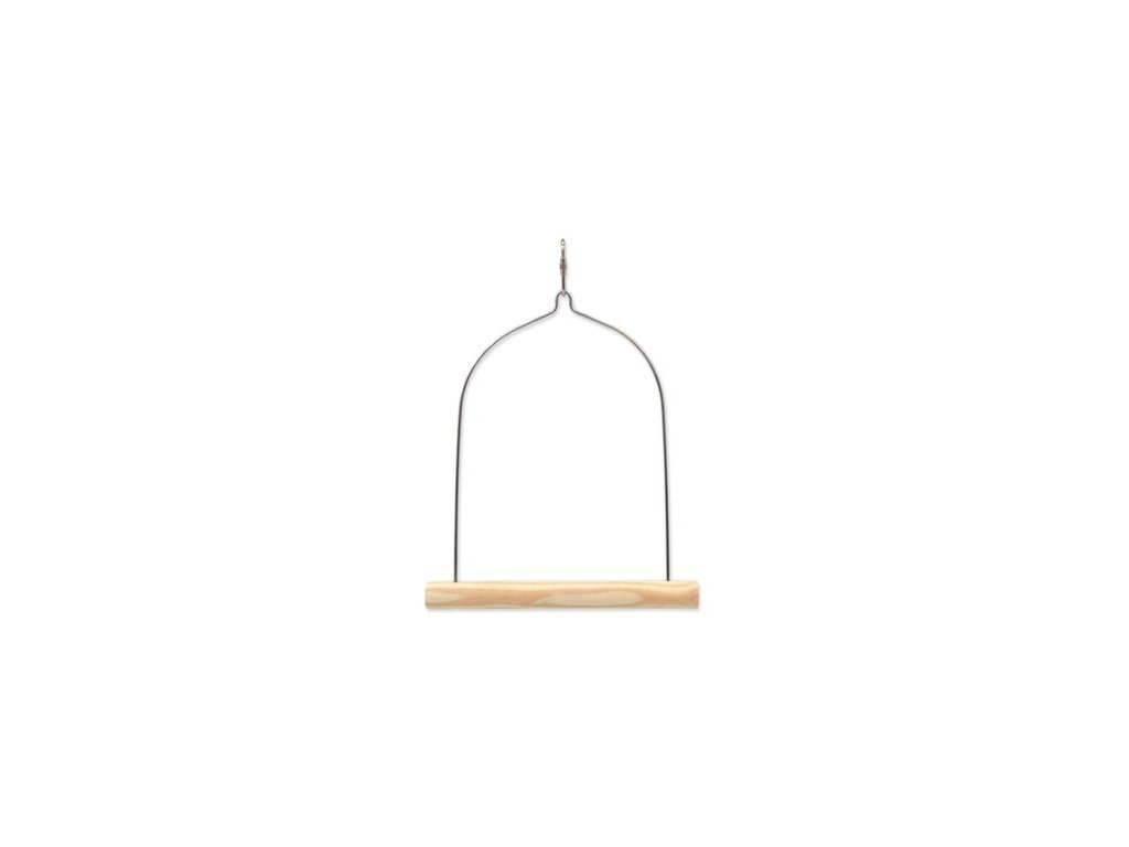 Dřevěná houpačka s kovovým závěsem k umístění do ptačích klecí.
