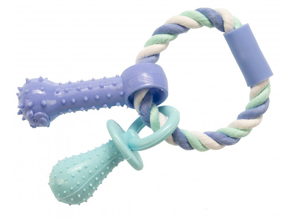Hračka Gimborn lano bavlna/TPR dudlíkyHračka Gimborn lano je skvělá kombinace dvou typů materiálů. Bavlněný provaz slouží k čištění zubů a plast zase dlouho odolává psím zubům. Hračka je vhodná pro všechna plemena psů zejména pak pro středně velké a velké psy. O hračku se můžete přetahovat nebo nechat psa, aby okusoval tvrdé části, čímž si bude přirozeně čistit zuby. Díky dlouhému poutku je možné hračku odhodit i na delší vzdálenost a nechat psa, aby vám ji aportoval. Ať už se rozhodnete pro jakoukoliv variantu hry, společně strávený čas váš pes jistě ocení.