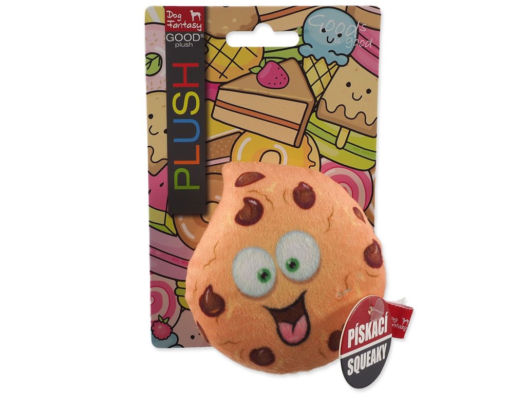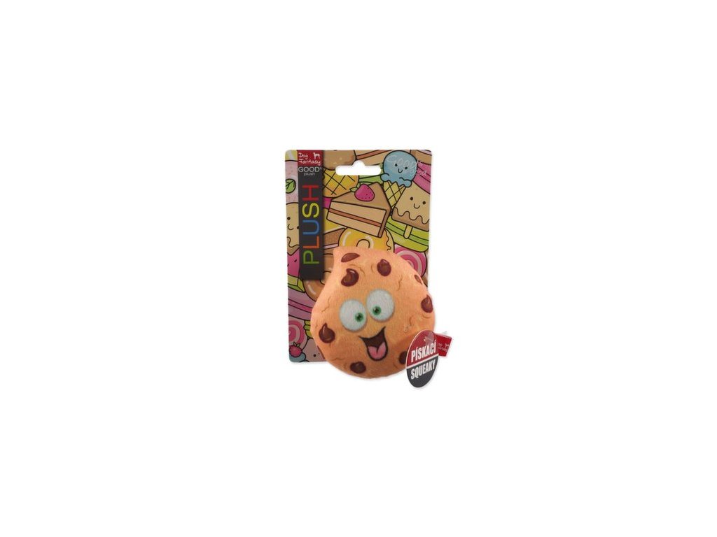 Roztomilá plyšová hračka ve tvaru sušenky. Při stlačení hračka píská.
