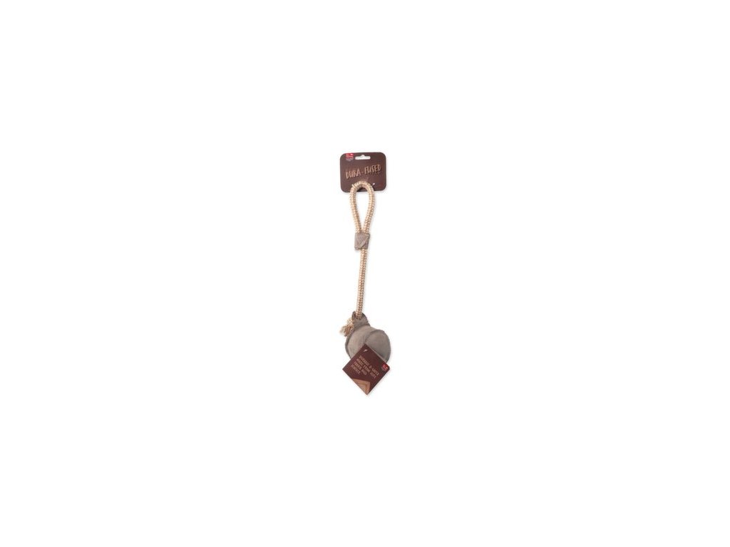 Tato hračka je navíc obzvláště odolná. Je ušitá ze dvou vrstev - spodní vrstva je vyrobena z juty a vrchní z kůže. Dvojitě prošité švy pevnou nití zaručují, že hračka vydrží i ty nejdivočejší hry.
