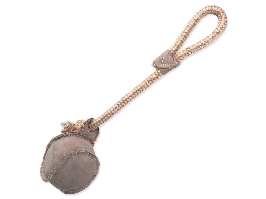 Hračka Dog Fantasy Dura-fused míček pískací s lanem, kůže a juta 32cm