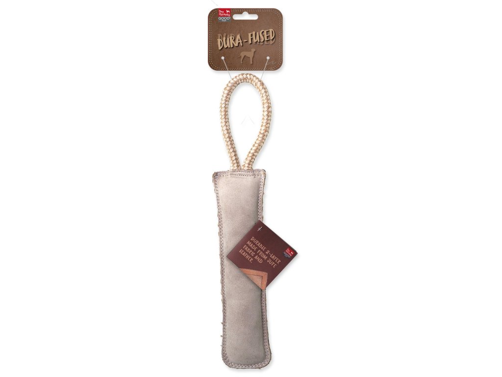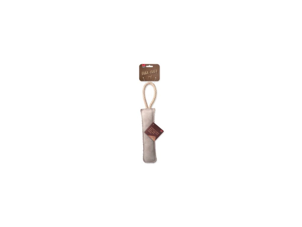 Tato hračka je navíc obzvláště odolná. Je ušitá ze dvou vrstev - spodní vrstva je vyrobena z juty a vrchní z kůže. Dvojitě prošité švy pevnou nití zaručují, že hračka vydrží i ty nejdivočejší hry.