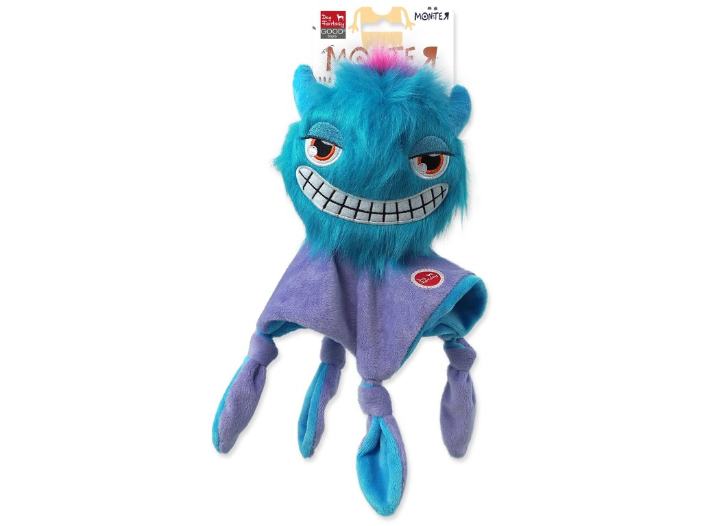 Hračka Dog Fantasy Monsters strašidlo pískací chlupaté modré s dečkou 28cm