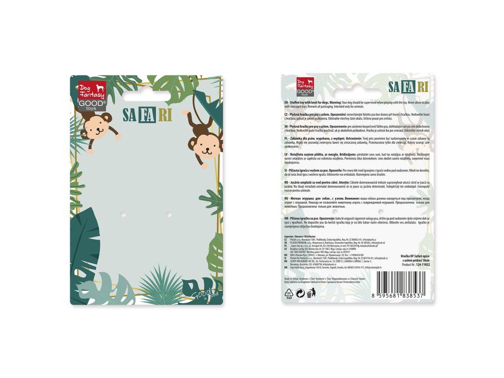 Hračka Dog Fantasy Safari opice s uzlem pískací 18cm