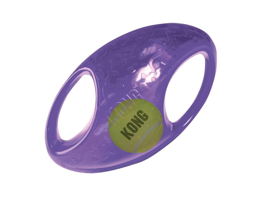 Hračka Kong Jumbler Rugby je skvělou interaktivní hračkou na házení, aportování a tahání se psem. Hračka má vestavěné pískátko, je nejen zábavná, ale i bezpečná. Obsahuje uvnitř tenisový míček, který podporuje hru psa pohybem uvnitř.