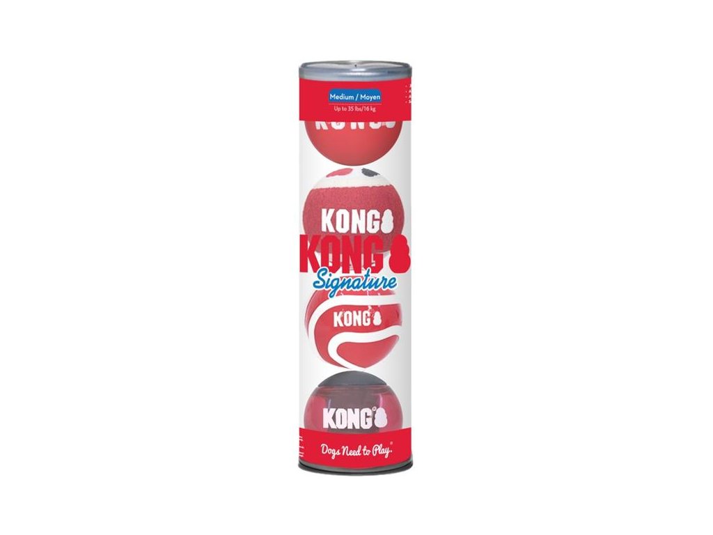 Míčky KONG Signature Ball vynikají odolností a vysokým odskokem díky speciální gumě, z níž jsou vyrobeny. Pružný, a přitom houževnatý materiál dobře odolává psím zubům. Zároveň je k zubům a dásním velmi šetrný – stejně jako jemná tenisová plsť, kterou KONG používá. Pro ještě větší vzrušení ze hry mají v sobě některé míčky zabudované pískátko.