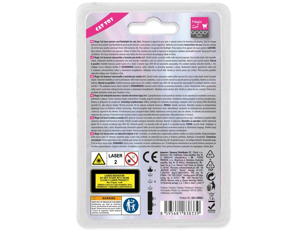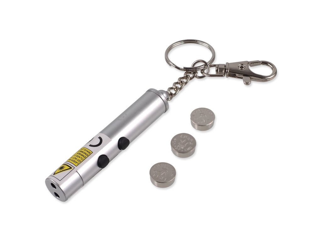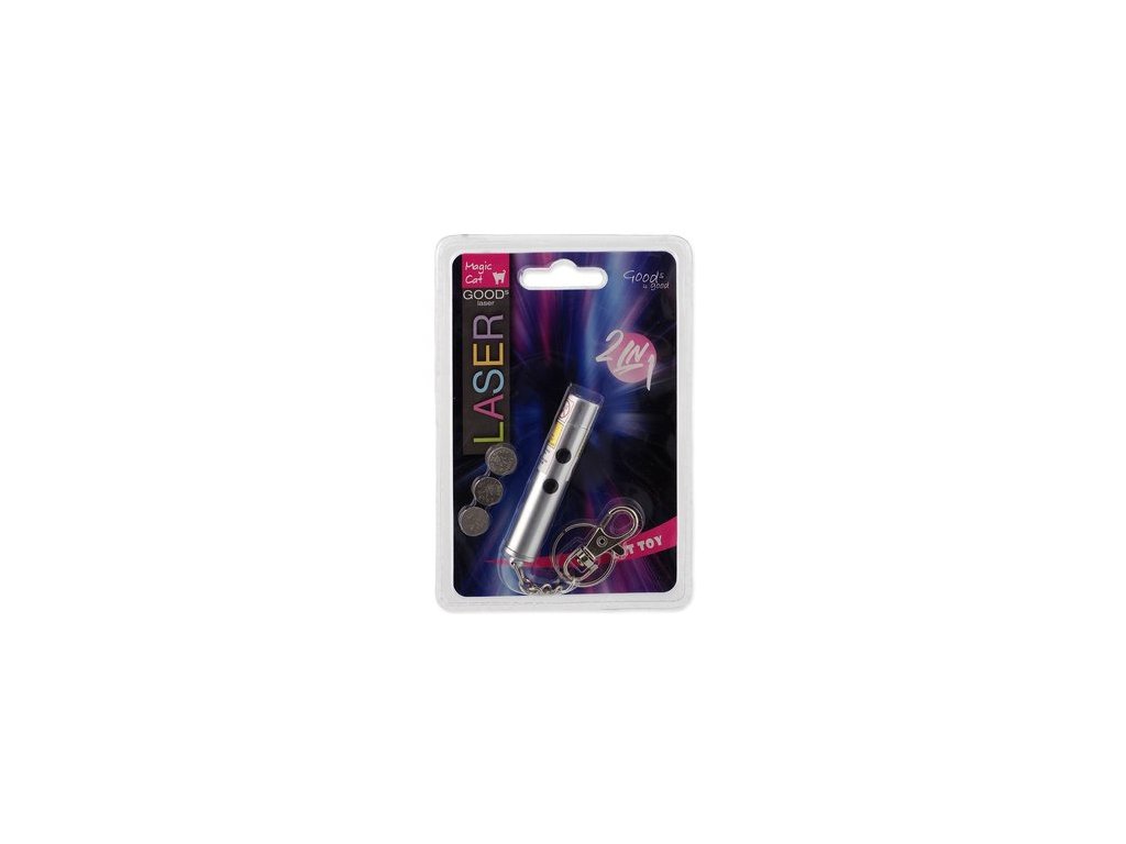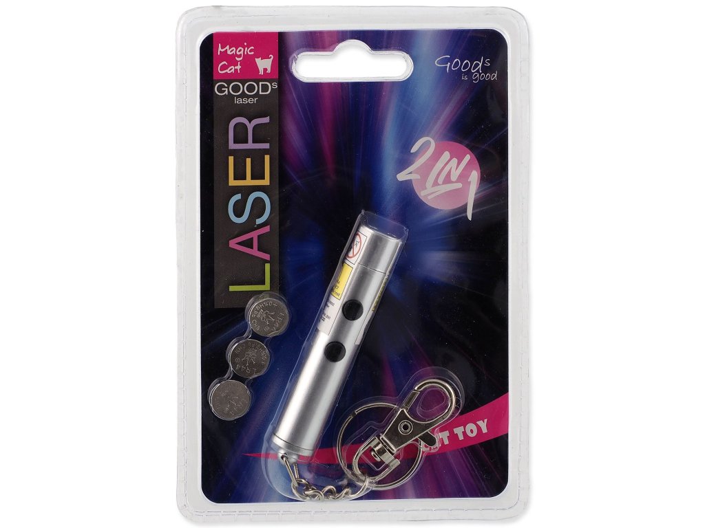 Skvělá hračka vyzařující světlo nebo laserový paprsek, který kočka bude chtít neustále chytat. Stisknutím tlačítek lze jednoduše volit mezi laserem a baterkou. Laser lze zavěsit na opasek pomocí karabinky. Baterie jsou součástí balení. ?