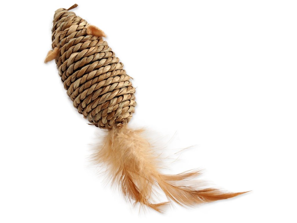 Atraktivní hračka pro kočky z mořské trávy s pírky.