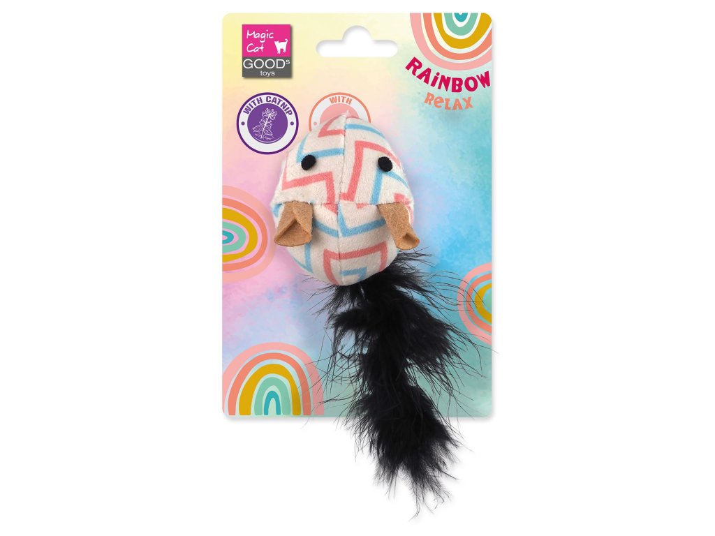 Hračka Magic Cat Rainbow Relax myš s pírkem a šantou kočičí bílá 5,5cm