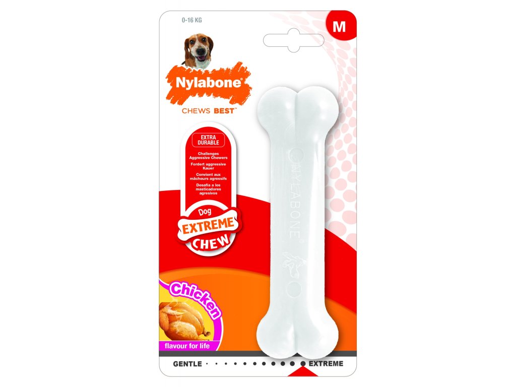 Hračka NYLAB Extreme Chew ChickenNylab Extreme Chew je extrémně odolná dentální hračka pro psy do 16 kg se silnými čelistmi/skusem a neukojitelnou touhou po žvýkání. Jedná se o bezpečnější alternativu k oblíbeným částem zvířat. Hračka je vyrobena z nylonu a obsahuje vápník a minerální látky. Neštěpí se, čistí zuby a psům dělá skutečně radost. Navíc, kost má příchuť kuřete.