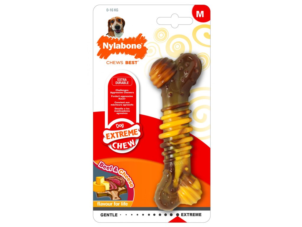 Hračka NYLAB Extreme Chew Texture Bone Steak&Cheese M