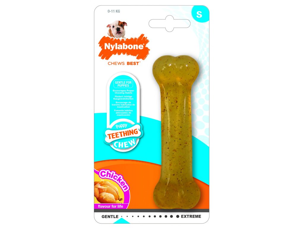 Hračka Nylabone PuppyboneHračka Nylab Puppybone velikost S kuřecí příchutí podporuje správné kousací návyky vašeho štěněte. Při kousání zklidňuje dásně a posiluje chrup. Hračka je vyrobena z odolného měkkého termoplastického polymeru, který uspokojí žvýkací instinkt štěňat a podporuje nedestruktivní žvýkání.