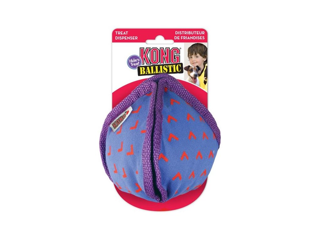KONG Ballistic plnící míč přináší dvě hračky v jednom. Plnící míč můžete využít jako aportovací míč, který je ideální při použití doma nebo jako interaktivní hádanku pro Vašeho psa. Míč ve svém nitru skrývá kapsy na pamlsky, které lze naplnit a Váš pes musí zapojit všechny své smysly, aby se k pamlskům dostal.