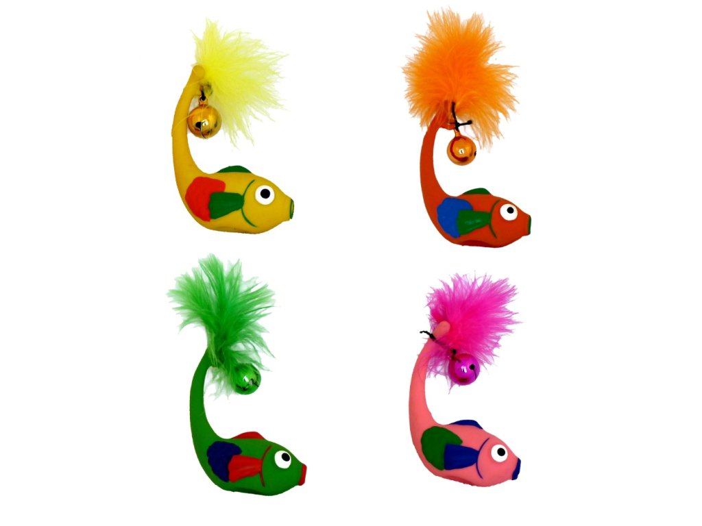 HRAČKA PRO KOČKY - ryba s rolničkou a pérkymateriál : latex