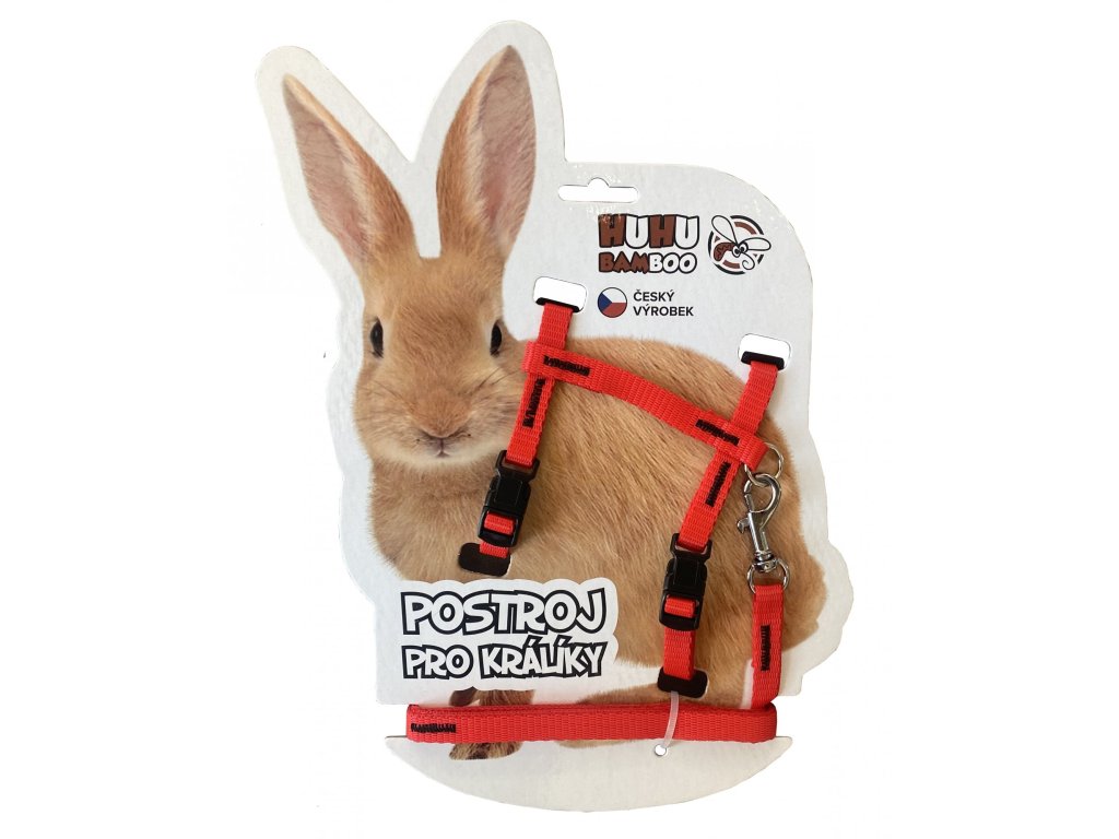 HUHUBAMBOO set postroj+vodítko KRÁLÍK, červenýSet vodítka a postroje je vyroben z měkkého popruhu. Spoje jsou šité, pro možnost štelování je postroj opatřen plastovou vsuvkou a přezkou. Pro připnutí vodítka jsou vybaveny dvěma déčky. Set je určen pro králíky.