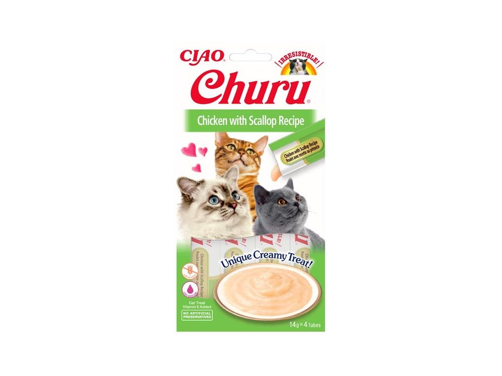 Neodolatelně chutné grain free masové pochoutky na způsob kočičích kapsiček, které se podávají přímo "z ruky". Díky unikátní krémové konzistenci pamlsku Churu objevíte nový způsob odměňování vašeho mazlíčka a chvíle s pochoutkami budou bavit vás i vaší kočku! S Churu budete trávit čas s vaší kočičkou hravým a interaktivním způsobem nebo můžete masové pyré podávat stejně jako jinou kočičí kapsičku samostatně z misky nebo společně s granulemi pro vylepšení jejich chuti. Kočičí pamlsky mají vysoký obsah vody a díky tomu jsou vhodným doplňkem k suchému krmivu, pro pohotovostní doplnění tekutin a pro kočky které málo pijí. Pamlsky Churu jsou 100% přírodní a zdravé mlsání pro kočičky všech věkových kategorií.