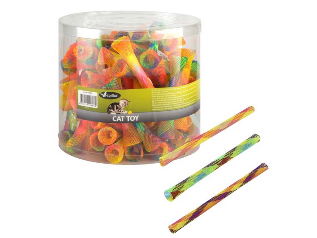 Plastová interaktivní pružinová tuba s catnipem pro kočky.