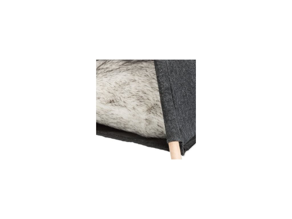 Jeskyně je vybavena oboustranným polštářkem, což přináší možnost variabilního využití. Na jedné straně je polštářek pokryt potahem z plyšové látky s dlouhým vlasem, vyrobeným z polyesteru. Tento materiál je zvolen z důvodu jeho extrémní měkkosti a schopnosti poskytnout teplý a příjemný pocit, což je ideální pro chladnější dny. Na druhé straně polštáře nalezneme tkanou látku, která je vyplněna polyesterovým flísem.