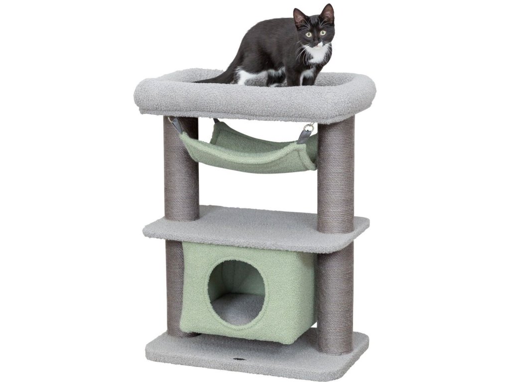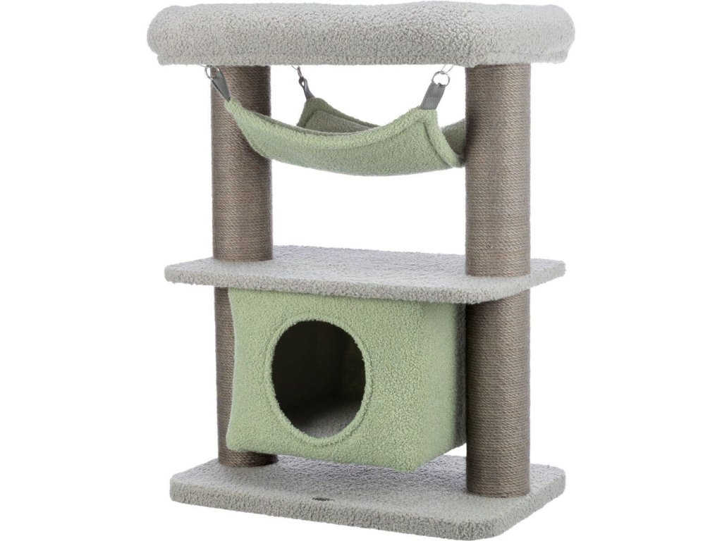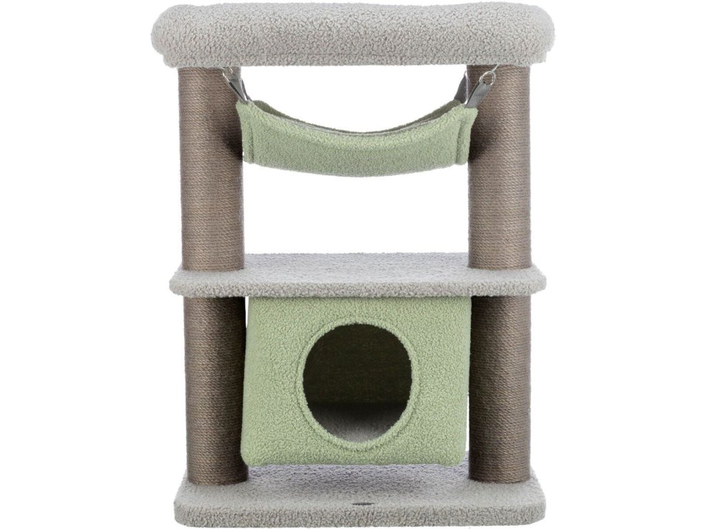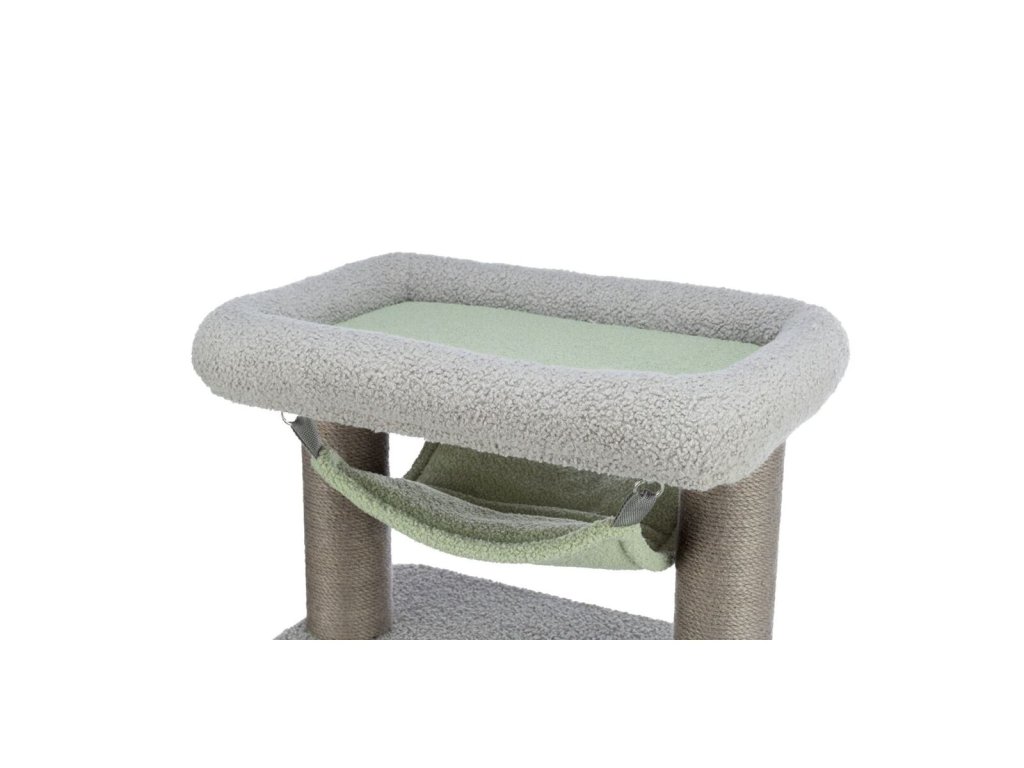JUNIOR škrábadlo LUNITO, 2 patra, jeskyně, hammock, 71 cm, šedá/mátová